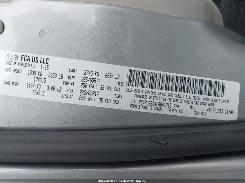 2015 DODGE GRAND CARAVAN 2015 року Бензин, 3.6, Передний привод, vin - 2C4RDGBG4FR641715 из США
