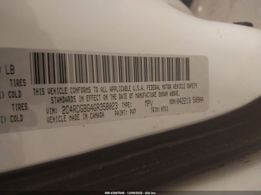 2016 DODGE GRAND CARAVAN 2016 року Бензин, 3.6, Передний привод, vin - 2C4RDGBG4GR358023 из США
