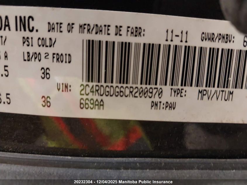 2012 DODGE GRAND CARAVAN CREW