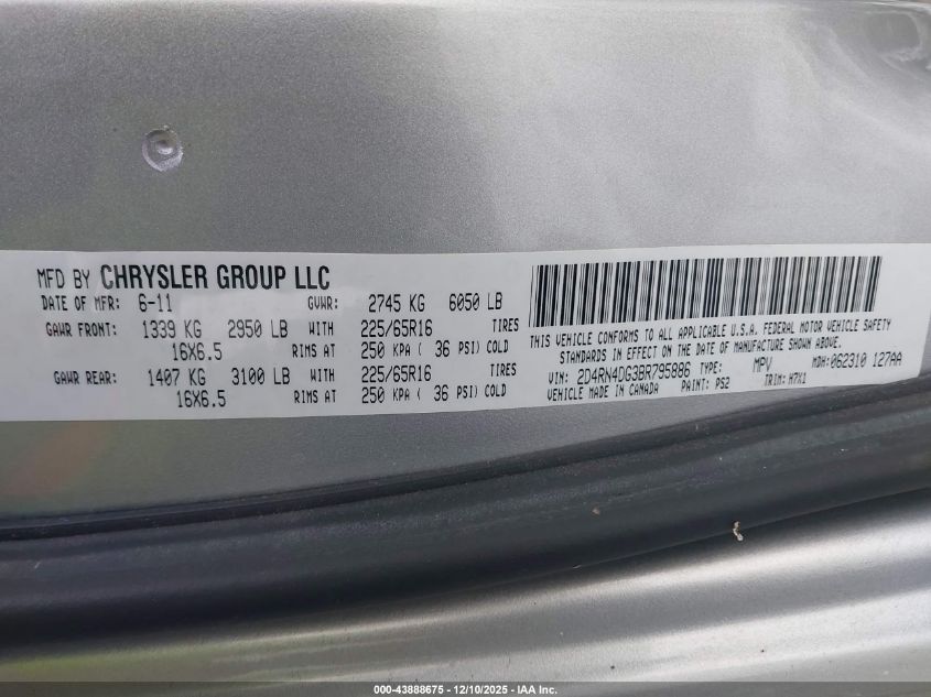 2011 DODGE GRAND CARAVAN 2011 року Бензин, 3.6, Передний привод, vin - 2D4RN4DG3BR795886 из США