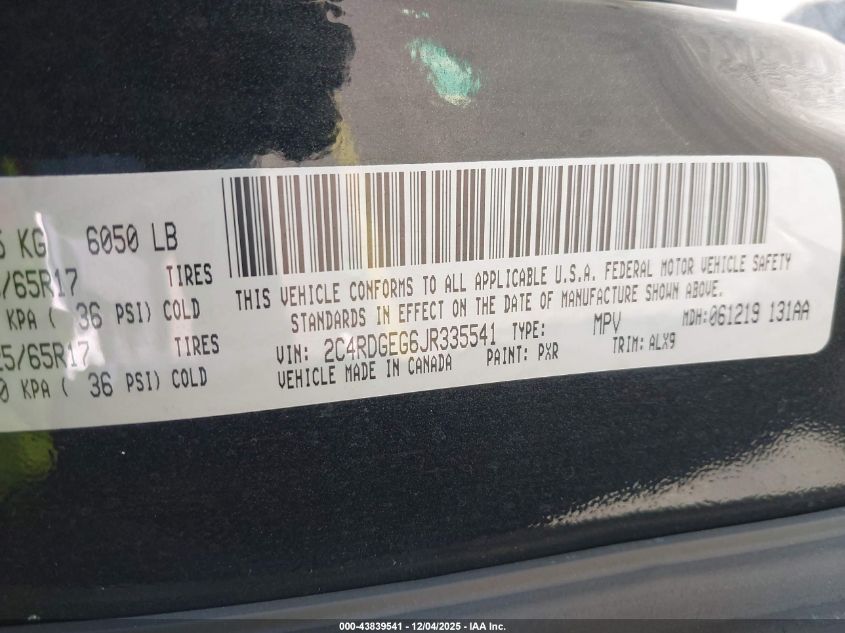 Цвет ЧерныйЦилиндры 6Привод Передний приводVIN 2C4RDGEG6JR335541Состояние СтационарноПовреждения Передняя или задняя AutoRIA