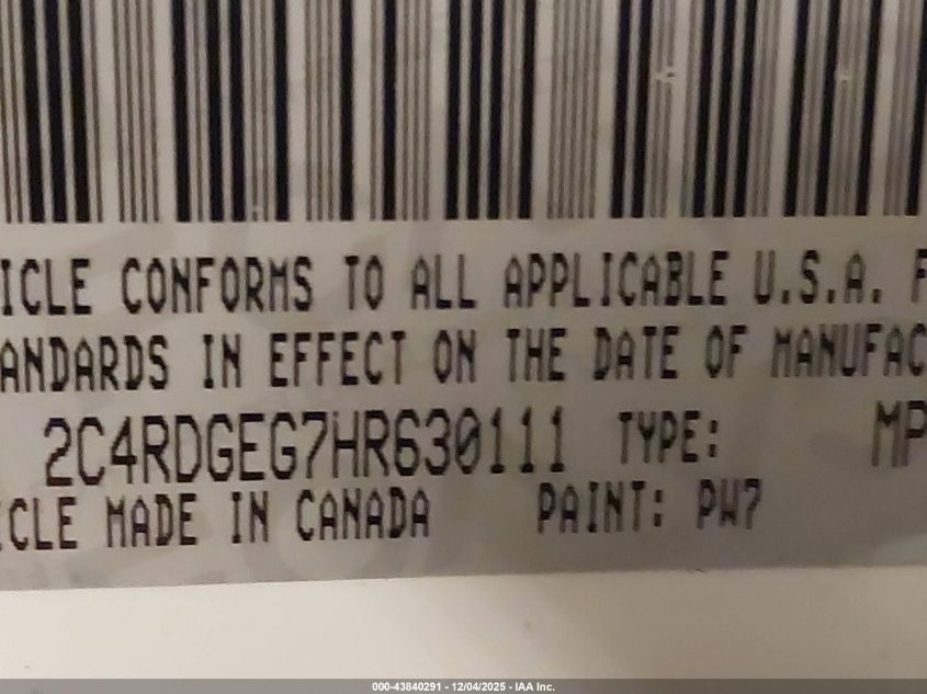 Цвет БелыйЦилиндры 6Привод Передний приводVIN 2C4RDGEG7HR630111Состояние Заводится и едет (проверено)Повреждения Передняя или задняя AutoRIA