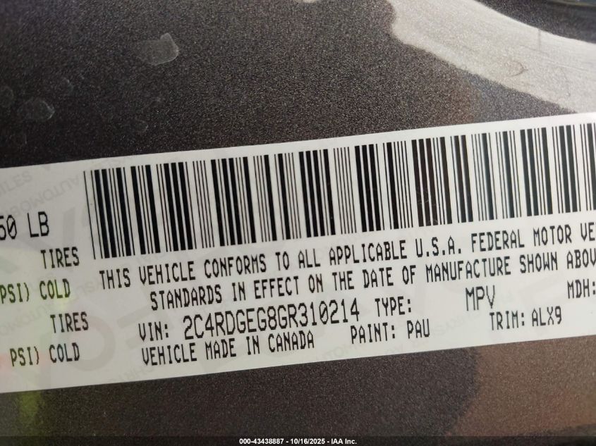 2016 DODGE GRAND CARAVAN 2016 року Бензин, 3.6, Передний привод, vin - 2C4RDGEG8GR310214 из США
