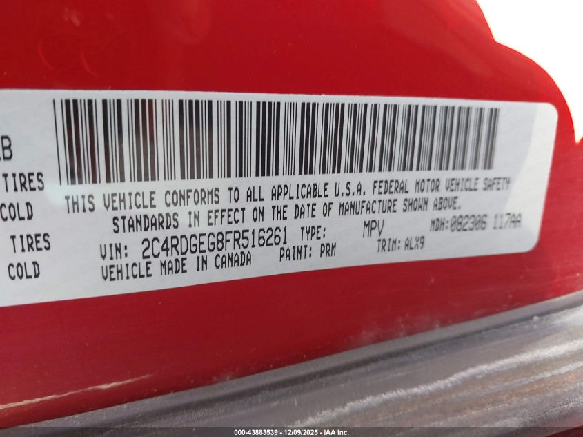 Цвет КрасныйЦилиндры 6Привод Передний приводVIN 2C4RDGEG8FR516261Состояние Заводится и едет (проверено)Повреждения По бокам AutoRIA