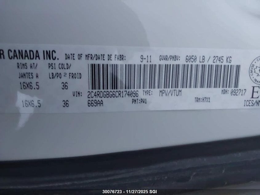 2012 DODGE GRAND CARAVAN 2012 року , , Передний привод, vin - 2C4RDGBG6CR174096 из США