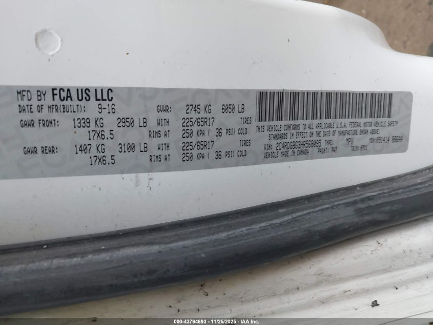 2017 DODGE GRAND CARAVAN GT
