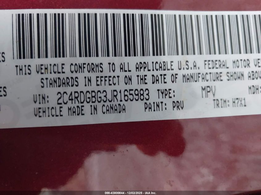 Цвет КрасныйЦилиндры 6Привод Передний приводVIN 2C4RDGBG3JR165983Состояние СтационарноПовреждения Задняя AutoRIA