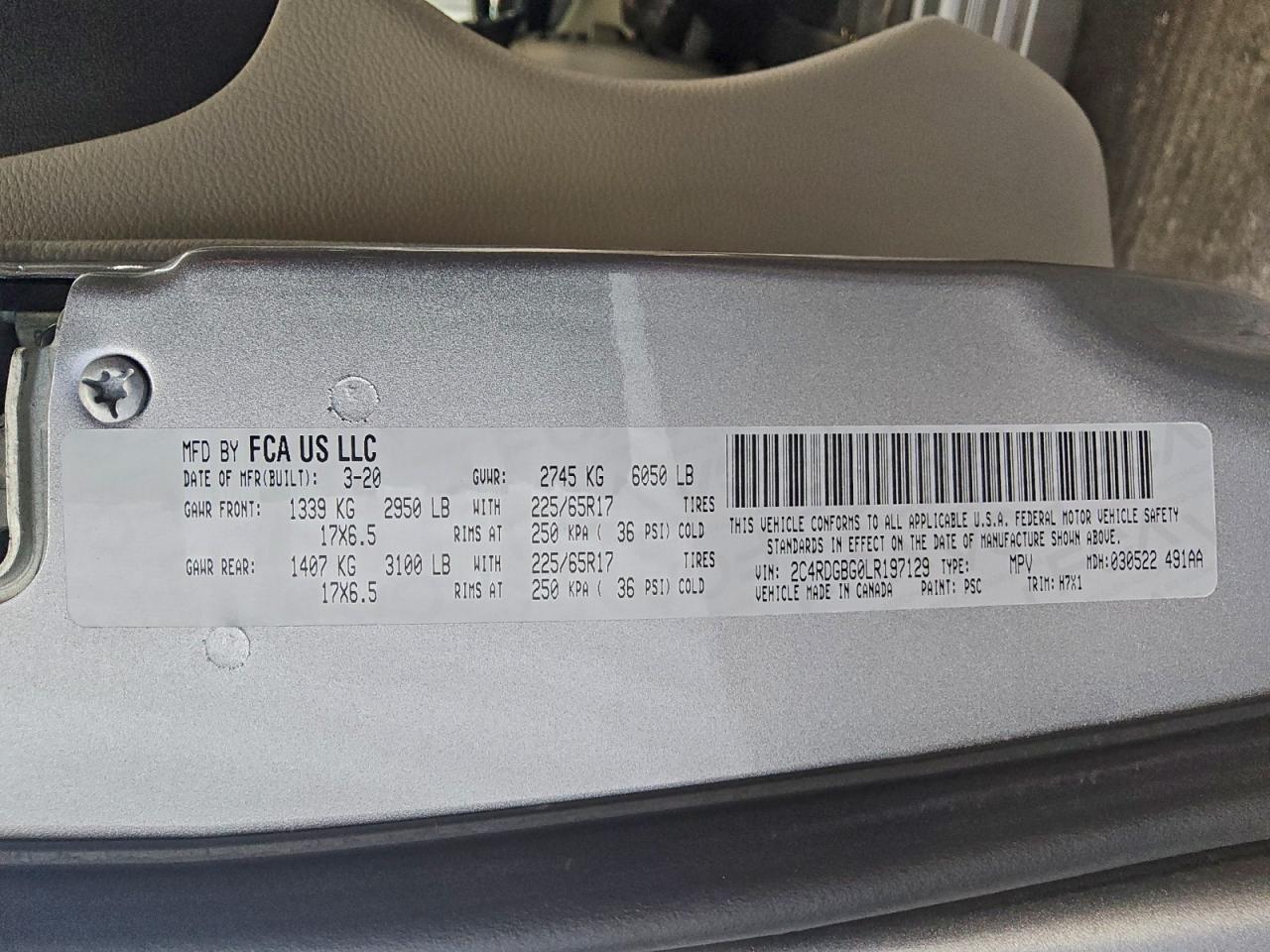 2020 DODGE GRAND CARAVAN 2020 року Бензин, 3.6, , vin - 2C4RDGBG0LR197129 из США