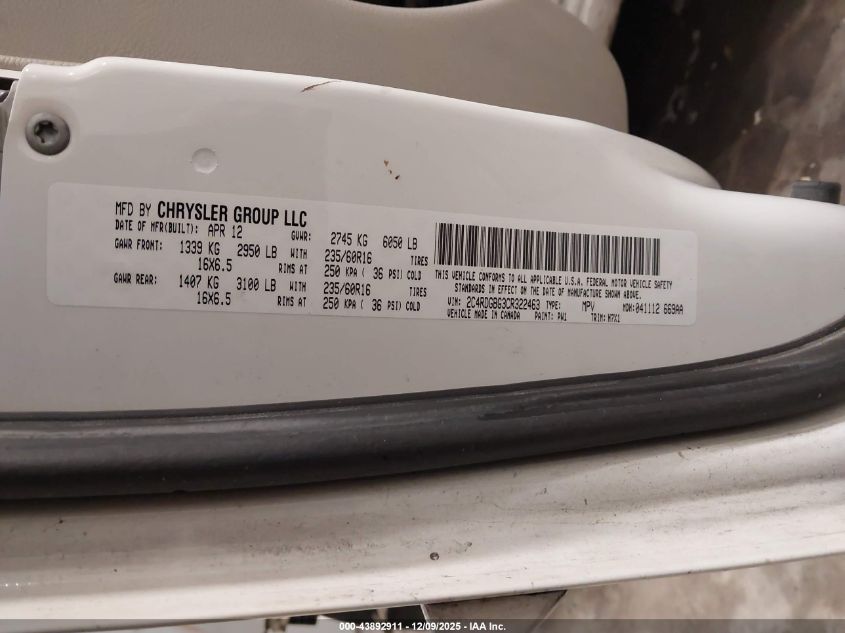 2012 DODGE GRAND CARAVAN 2012 року Бензин, 3.6, Передний привод, vin - 2C4RDGBG3CR322463 из США