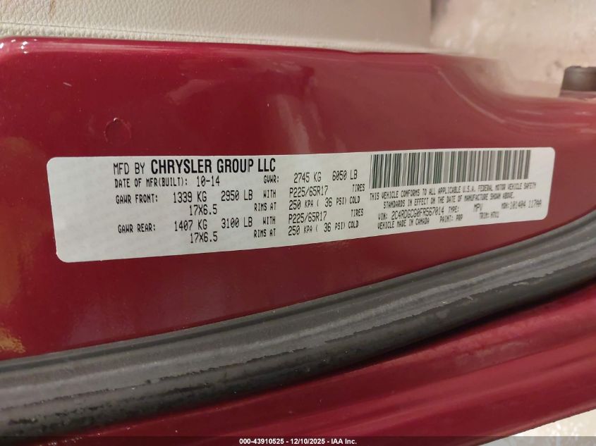 Цвет КрасныйЦилиндры 6Привод Передний приводVIN 2C4RDGCG0FR567014Состояние СтационарноПовреждения Задняя AutoRIA