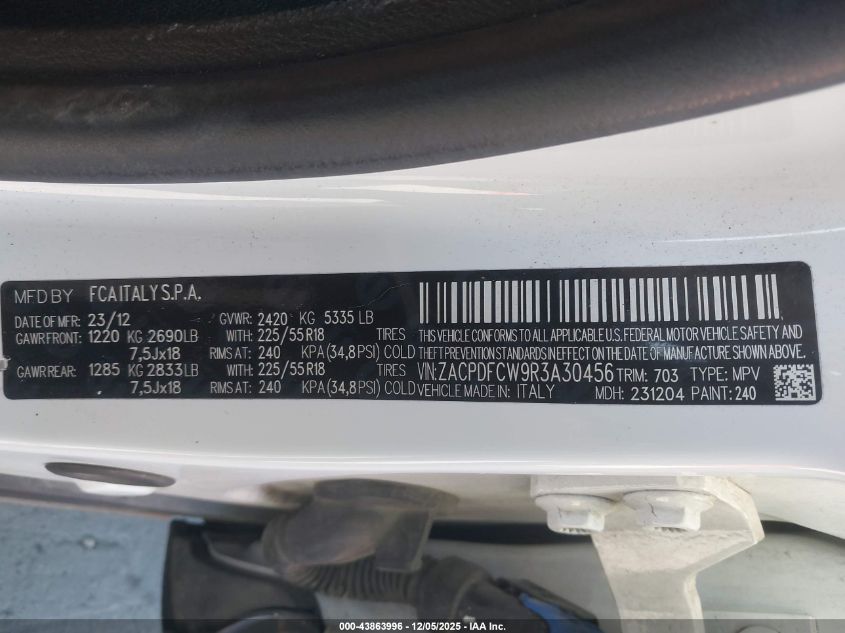 Цвет БелыйЦилиндры 4Привод Полный приводVIN ZACPDFCW9R3A30456Состояние СтационарноПовреждения Мотор AutoRIA
