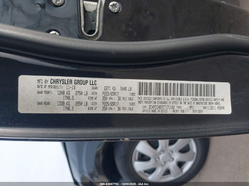 2014 DODGE JOURNEY 2014 року Бензин, 2.4, Передний привод, vin - 3C4PDCAB7ET171102 из США