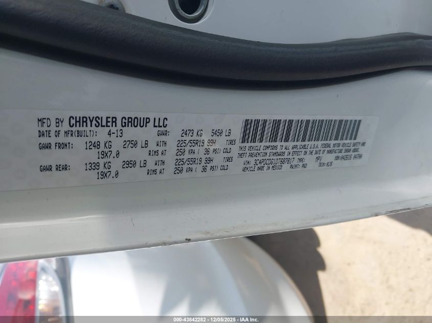 2013 DODGE JOURNEY 2013 року Бензин, 3.6, Передний привод, vin - 3C4PDCDG1DT687817 из США