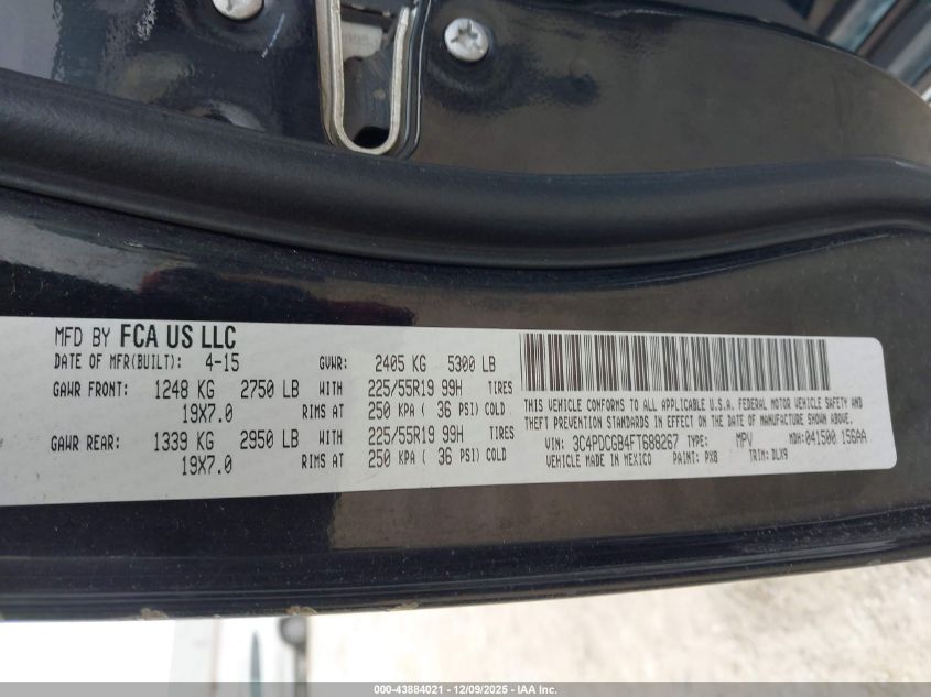2015 DODGE JOURNEY 2015 року Бензин, 2.4, Передний привод, vin - 3C4PDCGB4FT688267 из США