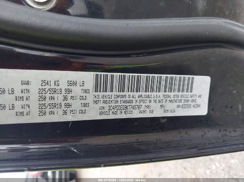 2019 DODGE JOURNEY 2019 року Бензин, 3.6, Полный привод, vin - 3C4PDDEG9KT745707 из США