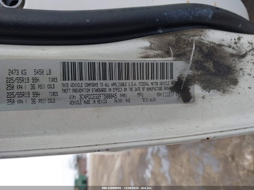 Цвет БелыйЦилиндры 6Привод Передний приводVIN 3C4PDCEG2FT588845Состояние Заводится и едет (проверено)Повреждения Левая сторона AutoRIA