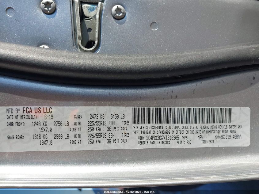 2019 DODGE JOURNEY 2019 року Бензин, 3.6, Передний привод, vin - 3C4PDCBG7KT816305 из США