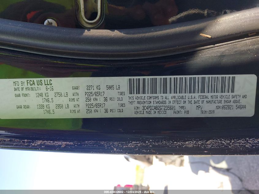 2016 DODGE JOURNEY 2016 року Бензин, 2.4, Передний привод, vin - 3C4PDCAB2GT235601 из США