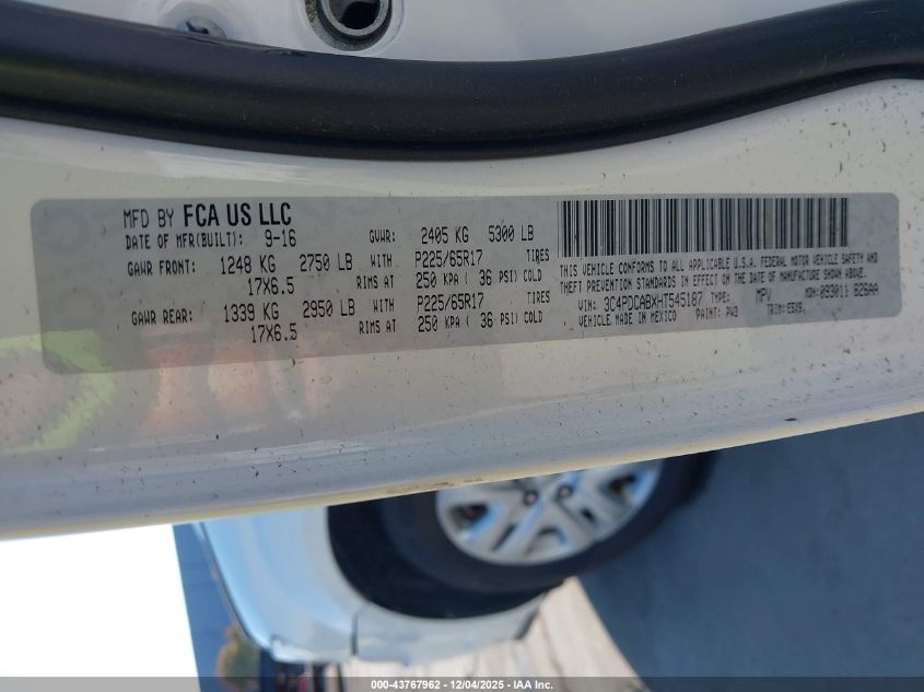 Цвет БелыйЦилиндры 4Привод Передний приводVIN 3C4PDCABXHT545187Состояние Заводится и едет (проверено)Повреждения Передняя или задняя AutoRIA