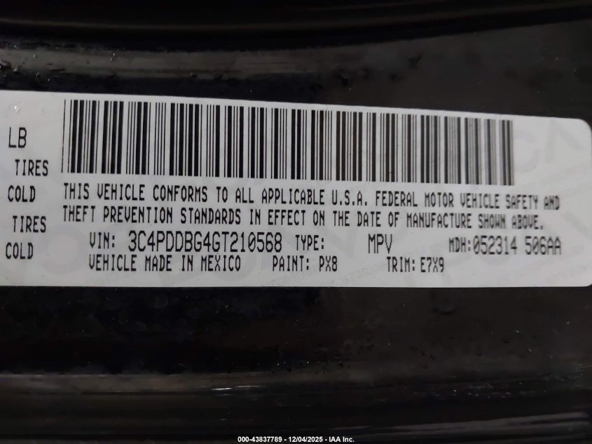 2016 DODGE JOURNEY 2016 року Бензин, 3.6, Полный привод, vin - 3C4PDDBG4GT210568 из США