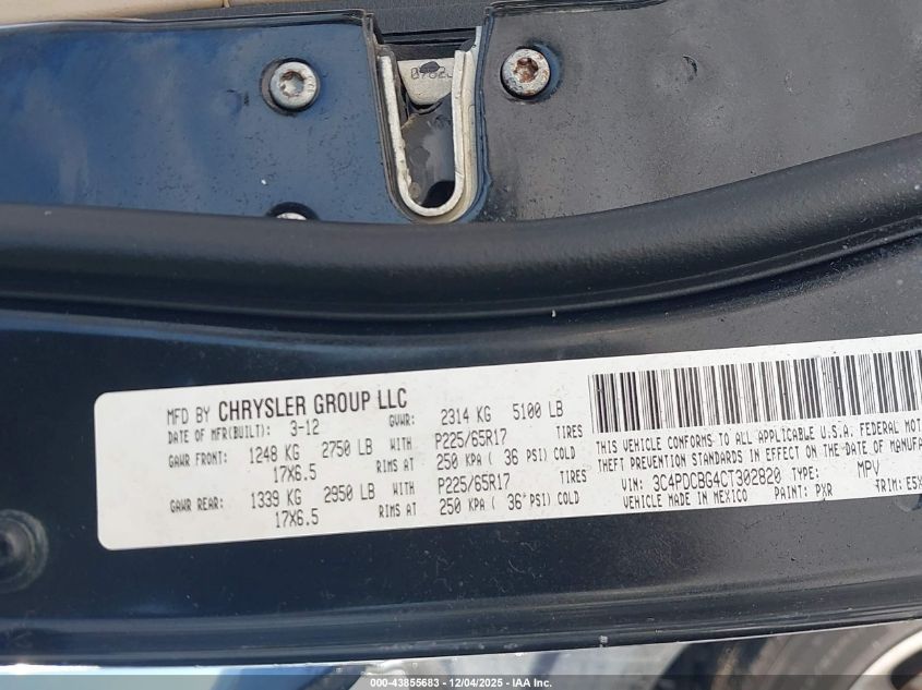 2012 DODGE JOURNEY 2012 року Бензин, 3.6, Передний привод, vin - 3C4PDCBG4CT302820 из США
