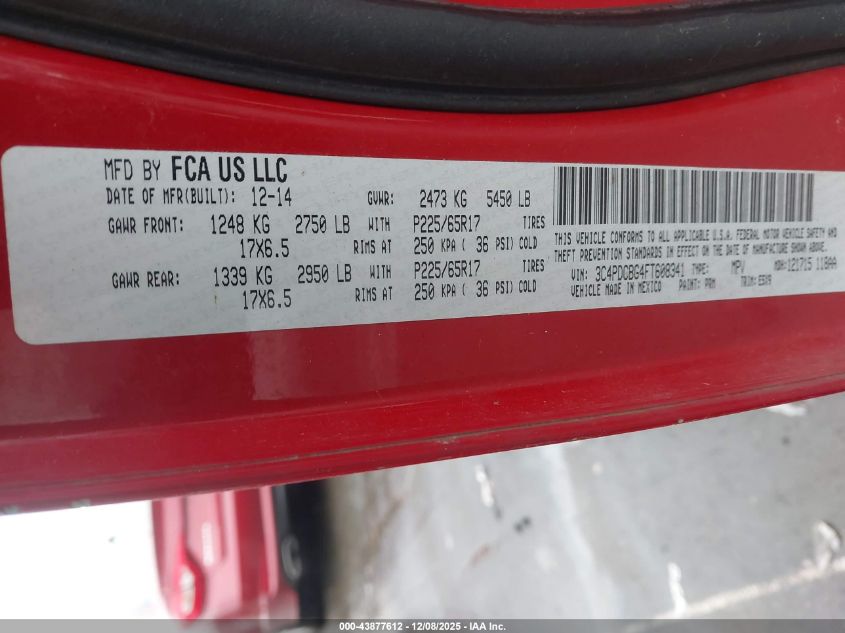 Цвет КрасныйЦилиндры 6Привод Передний приводVIN 3C4PDCBG4FT608341Состояние СтационарноПовреждения Передняя или задняя AutoRIA