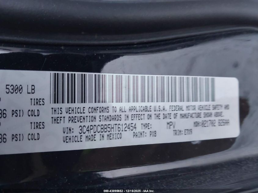 2017 DODGE JOURNEY 2017 року Бензин, 2.4, Передний привод, vin - 3C4PDCBB5HT612454 из США