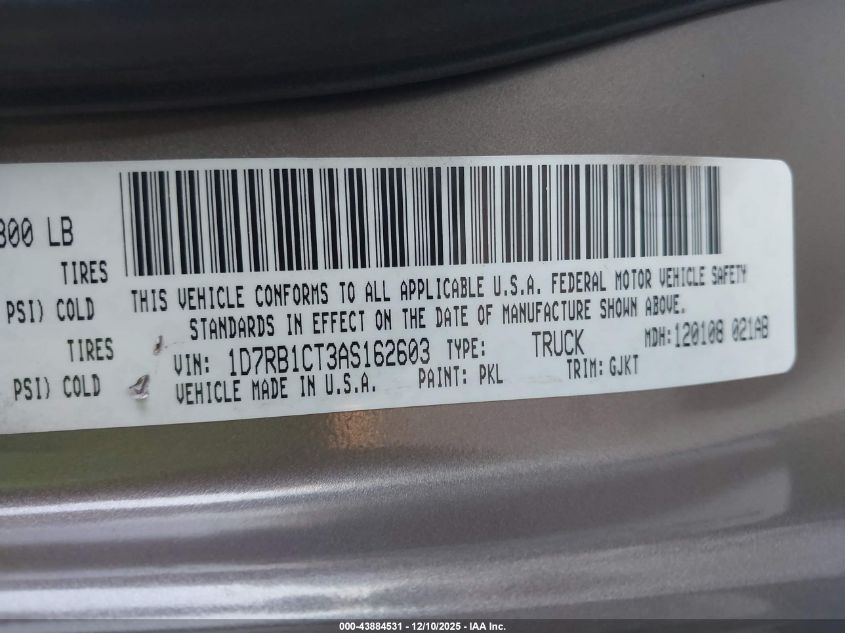 2010 DODGE RAM 1500 2010 року Бензин, 5.7, , vin - 1D7RB1CT3AS162603 из США