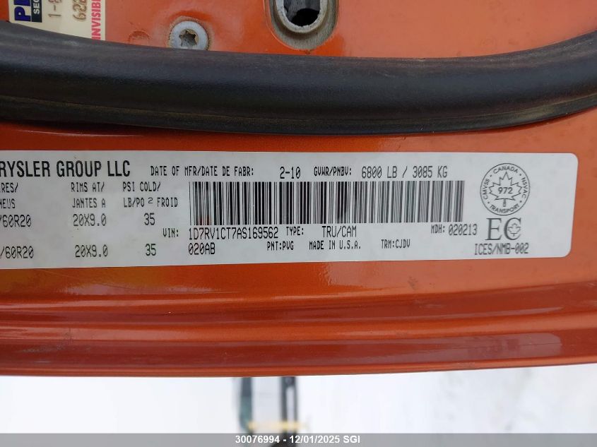 2010 DODGE RAM 1500 2010 року Бензин, , Полный привод, vin - 1D7RV1CT7AS169562 из США