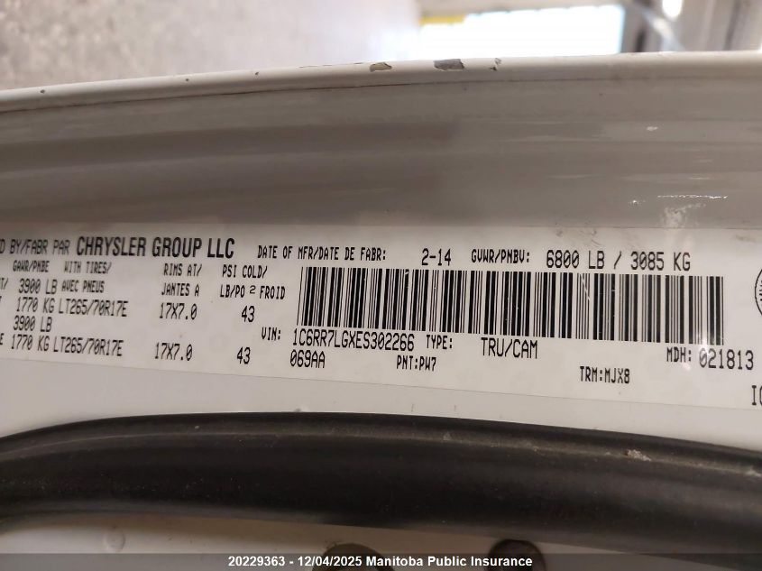 Цвет БелыйЦилиндры 6Привод Полный приводVIN 1C6RR7LGXES302266Состояние СтационарноПовреждения ПередняяДата аукциона 2025-12-10 AutoRIA