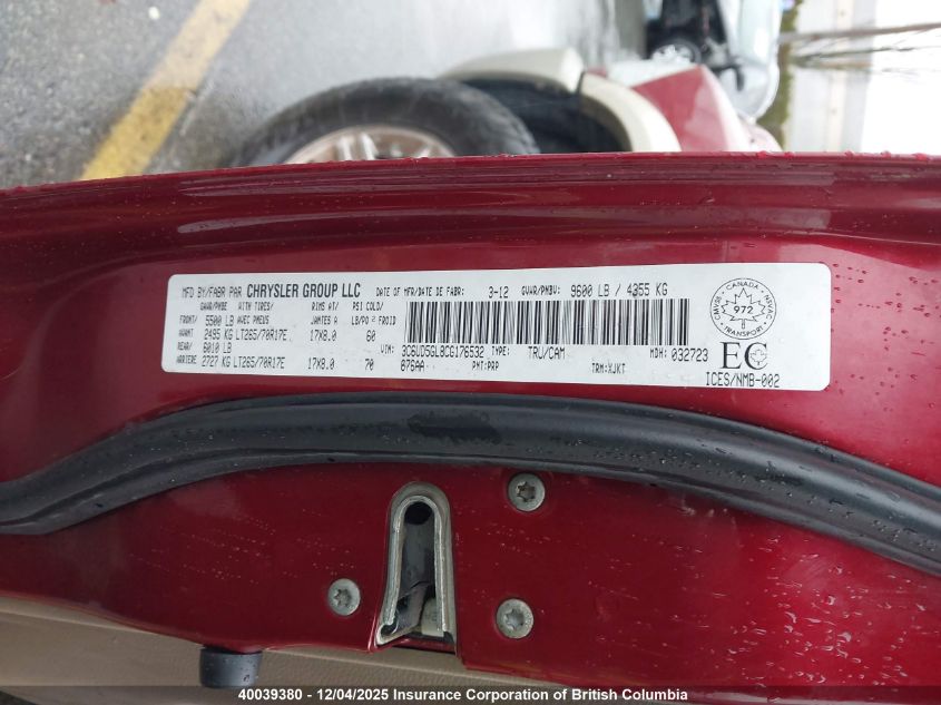 Цвет КрасныйЦилиндры 6Привод Полный приводVIN 3C6UD5GL8CG176532Состояние ЗаводитсяПовреждения Передняя праваяДата аукциона 2025-12-08