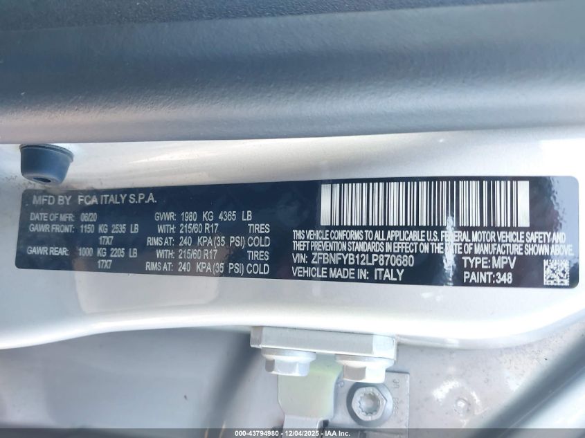 Цвет СеребряныйЦилиндры 4Привод Полный приводVIN ZFBNFYB12LP870680Состояние Заводится и едет (проверено)Повреждения По всему авто AutoRIA