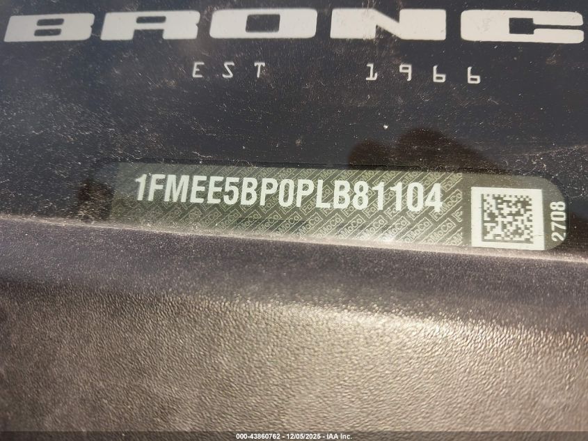 2023 FORD BRONCO 2023 року Бензин, 2.7, Полный привод, vin - 1FMEE5BP0PLB81104 из США