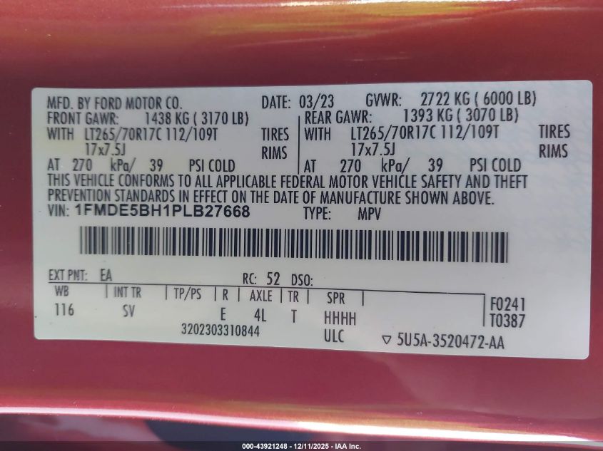 Цвет Цилиндры 4Привод Полный приводVIN 1FMDE5BH1PLB27668Состояние НеизвестноПовреждения Задняя AutoRIA