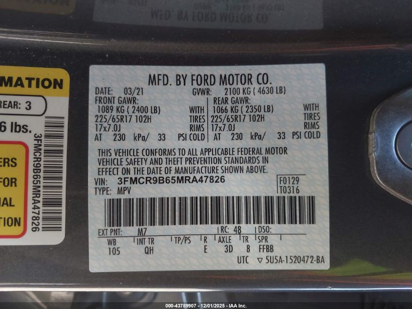 2021 FORD BRONCO SPORT 2021 року Бензин, 1.5, Полный привод, vin - 3FMCR9B65MRA47826 из США