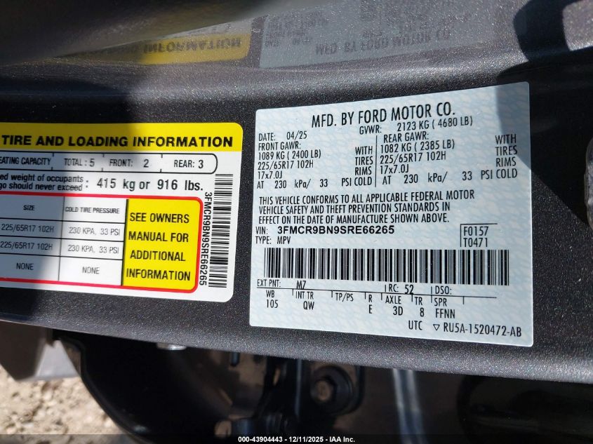 2025 FORD BRONCO SPORT 2025 року Бензин, 1.5, Полный привод, vin - 3FMCR9BN9SRE66265 из США