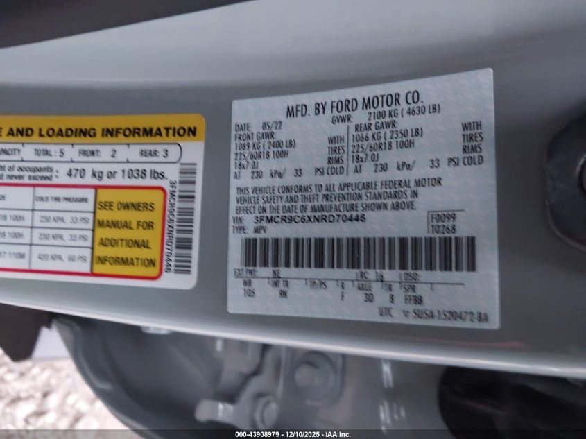 Цвет СерыйЦилиндры 3Привод Полный приводVIN 3FMCR9C6XNRD70446Состояние Заводится и едет (проверено)Повреждения Передняя или задняя AutoRIA