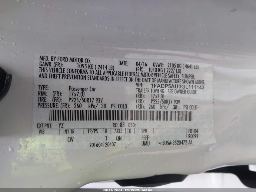2016 FORD C-MAX 2016 року Гибрид, 2.0, Передний привод, vin - 1FADP5AU0GL111142 из США