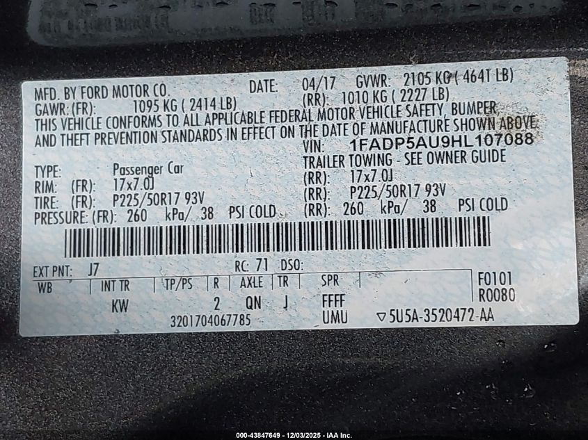 Цвет СерыйЦилиндры 4Привод Передний приводVIN 1FADP5AU9HL107088Состояние ЗаводитсяПовреждения Передняя левая AutoRIA