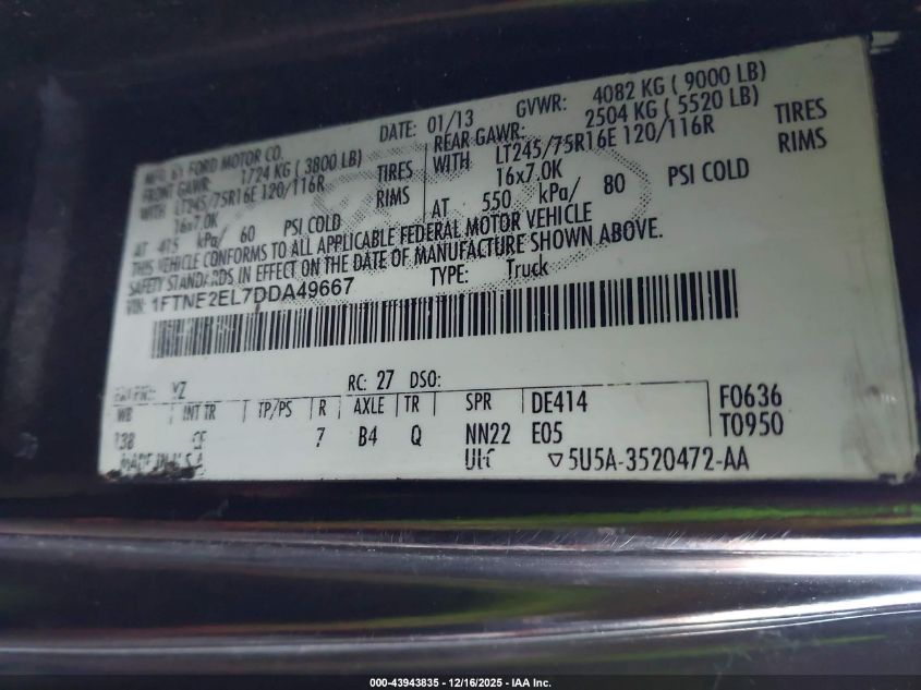 2013 FORD E-250 E250 VAN