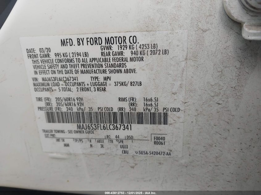 2020 FORD ECOSPORT 2020 року Бензин, 2.0, Полный привод, vin - MAJ6S3FL6LC367341 из США