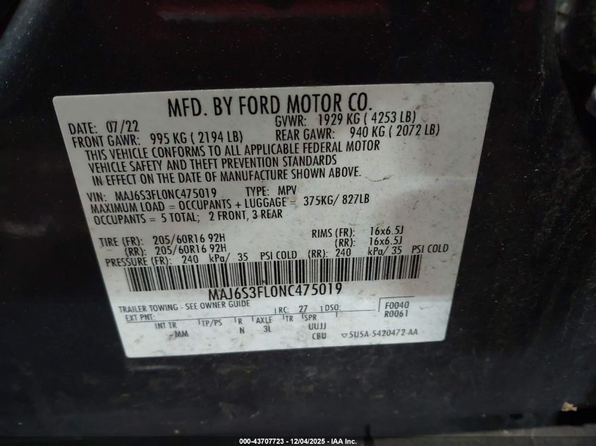 Цвет СерыйЦилиндры 4Привод Полный приводVIN MAJ6S3FL0NC475019Состояние Заводится и едет (проверено)Повреждения Передняя или задняя AutoRIA