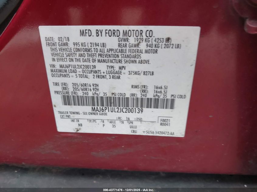 2018 FORD ECOSPORT 2018 року Бензин, 2.0, Полный привод, vin - MAJ6P1UL2JC200139 из США