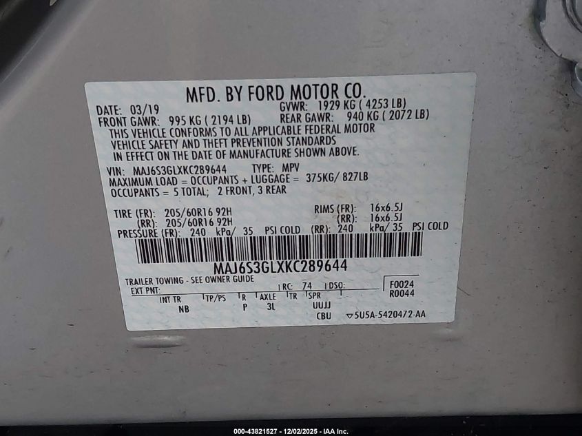 2019 FORD ECOSPORT 2019 року Бензин, 2.0, Полный привод, vin - MAJ6S3GLXKC289644 из США
