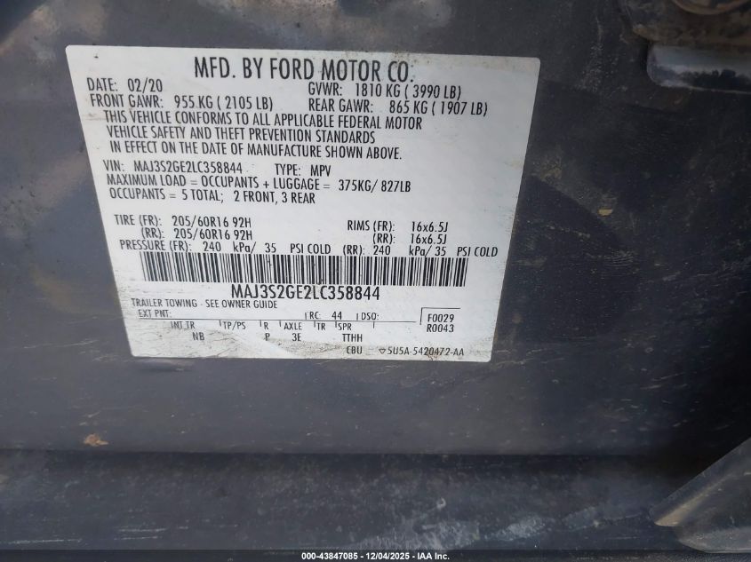 2020 FORD ECOSPORT 2020 року Бензин, 1.0, Передний привод, vin - MAJ3S2GE2LC358844 из США