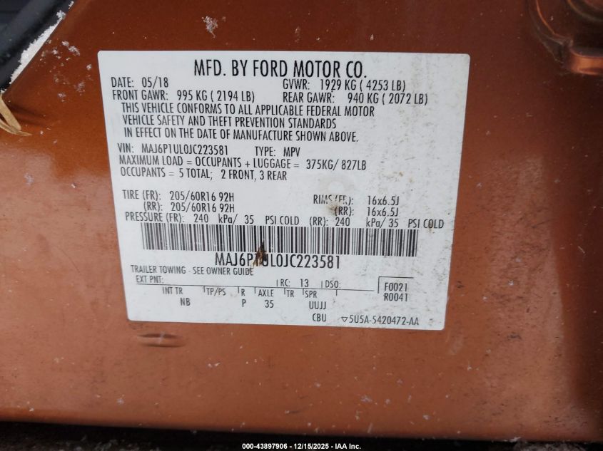 2018 FORD ECOSPORT 2018 року Бензин, 2.0, Полный привод, vin - MAJ6P1UL0JC223581 из США