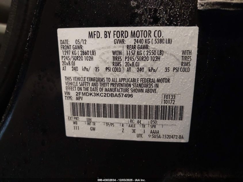 Цвет ЧерныйЦилиндры 6Привод Передний приводVIN 2FMDK3KC2DBA57496Состояние СтационарноПовреждения Передняя или задняя AutoRIA