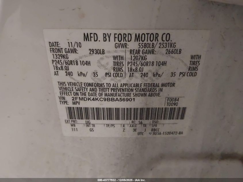 2011 FORD EDGE 2011 року Бензин, 3.5, Полный привод, vin - 2FMDK4KC9BBA56901 из США
