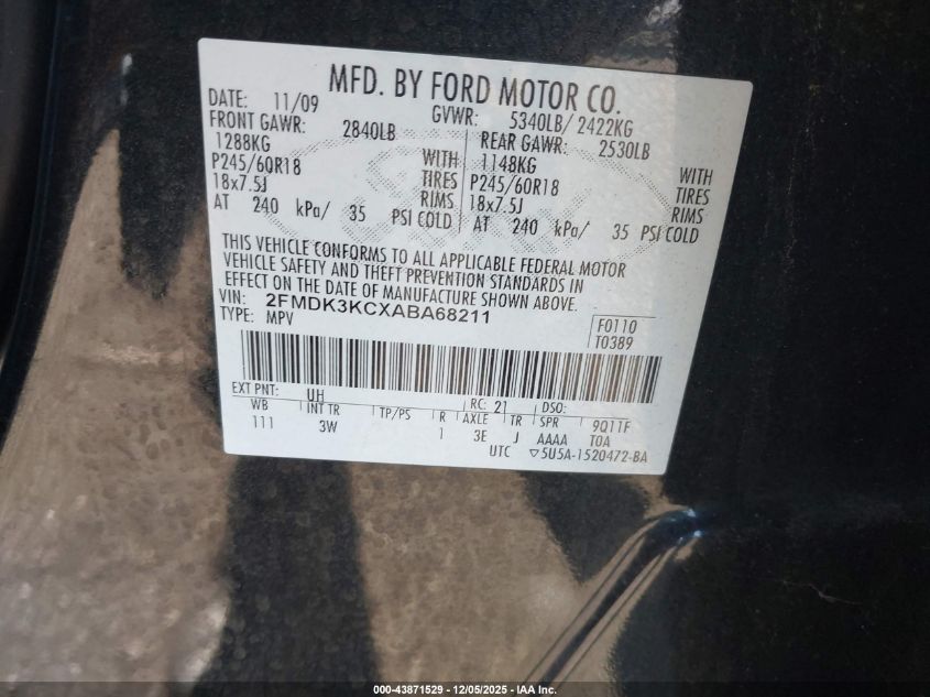 2010 FORD EDGE 2010 року Бензин, 3.5, Передний привод, vin - 2FMDK3KCXABA68211 из США