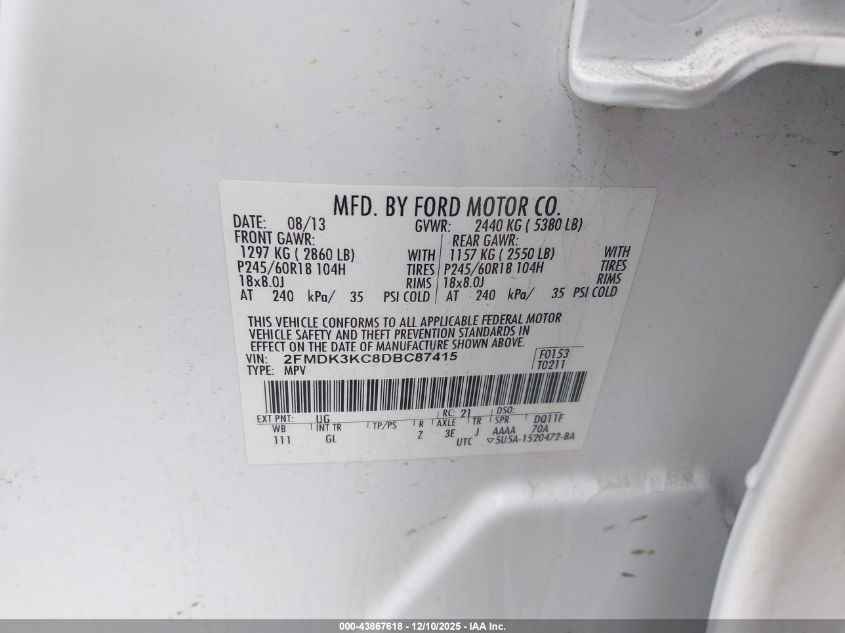 Цвет БелыйЦилиндры 6Привод Передний приводVIN 2FMDK3KC8DBC87415Состояние Заводится и едет (проверено)Повреждения Передняя или задняя AutoRIA